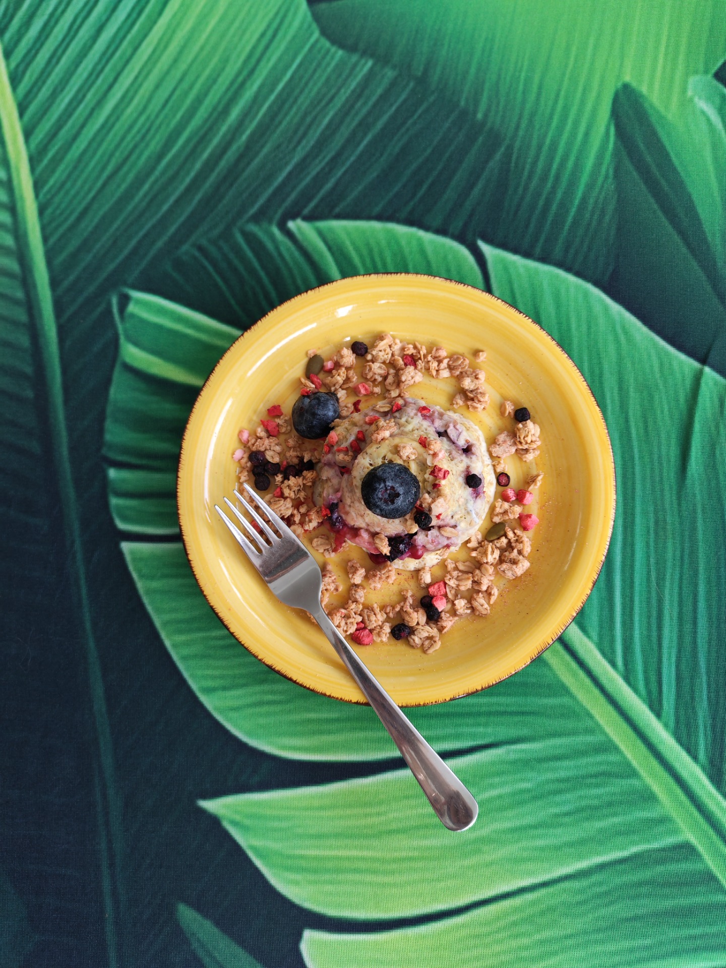 Een simpele theemok omtoveren tot een lekker ontbijt, dat is simpelweg wat je doet als je aan de slag gaat met dit recept voor een havermout mug cake met blauwe bessen.